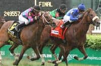 Coudelaria Jessica Inc.’s Queen’s Award collared defending champion Madame Giry in deep stretch to win the 17th running of the $100,000 Buffalo Trace ...